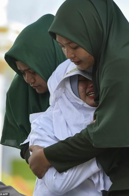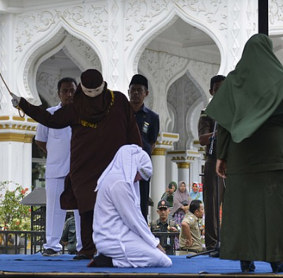 Two women had to be carried from the scene of a public flogging when they couldn't walk on their own after they were whipped. The women were flogged for having "intimate relations" with the opposite sex outside marriage in Indonesia. They were among six unmarried couples caught in a raid on a hotel in Indonesia’s conservative Aceh province last year, and found guilty of breaking Sharia law. After serving several months in prison, the six women and six men were subjected to a public whipping in the capital Banda Aceh on Monday.