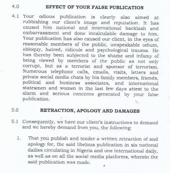 Atiku Abubakar, the presidential candidate of the Peoples Democratic Party in the 2019 general elections has demanded N500m and a written apology from an aide to President Buhari on social media, Lauretta Onochie, for “spreading lies capable of damaging” his reputation. In a letter addressed to Onochie and signed by Atiku’s lawyer, Mike Ozekhome (SAN), the former Vice-President took issues with Onochie’s post on Twitter which states, ‘Atiku on UAE watch list- Security Sources.’ Atiku said he was never on any watch list and challenged Onochie to prove her allegation. He said he would sue Onochie for N2bn and cyber bullying if she fails to meet his demands.The letter reads in part, “We have our client’s instructions to demand and we hereby demand from you the following: That you publish and tender a written retraction and apology for the said libellous publication in six national dailies circulating in Nigeria and one international daily as well as on all social media platforms wherein the said publication was made. “That you pay to our client through the firm, the sum of N500,000,000 only, representing minimal damages to assuage his already battered image wholly caused by your said defamatory publication. “Take notice that if you fail or refuse to accede to our modest demands within the next 48 hours from the date of this letter, we shall be compelled to activate the full weight of the legal machinery against you without any further recourse to you. “We shall be, in such a suit, claiming against you the sum of N2bn, representing exemplary aggravated and punitive damages.” Onochie, who has been Buhari’s aide for over three years, has been known to attack persons who criticise the President.See the full letter below...