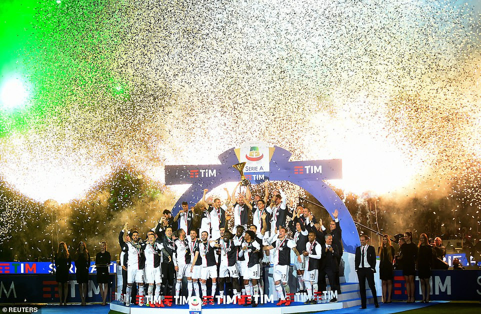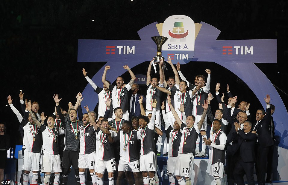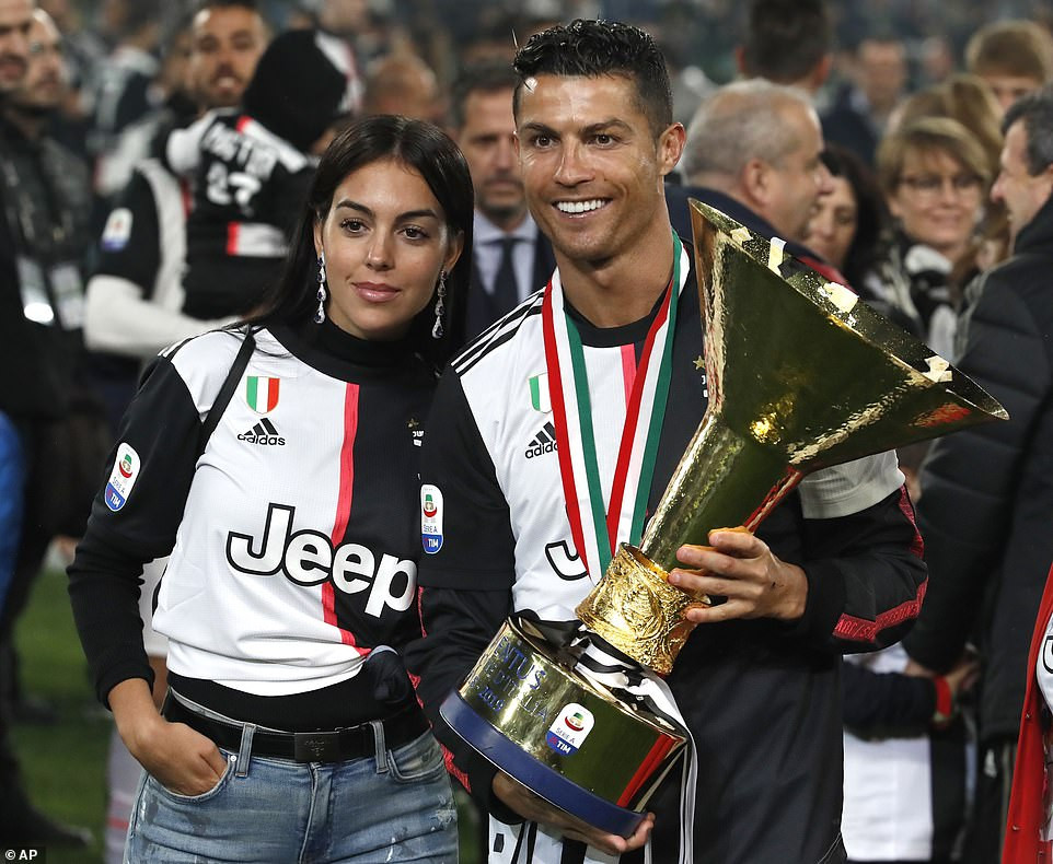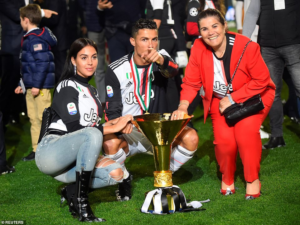 Superstar footballer, Cristiano Ronaldo was presented with the award for best player in Serie A last night, before Juventus kick-started their celebrations after finally lifting the Serie A trophy and marking their eighth successive season as champions of Italian football. The Portuguese superstar finished his debut season in Italian football with 21 Serie A goals and eight assists to receieve the award, which made him the first player to pick up the equivalent award in England, Spain, and Italy. The Italian giants were handed the Serie A trophy after playing their last home game which ended with a 1-1 draw against Atalanta. Club legend Gianluigi Buffon including new signing, Aaron Ramsey were invited by the club for their last home game. Cristiano Ronaldo's girlfriend Georgina RodrÃguez and mother Maria Dolores dos Santos Aveiro were also in attendance to watch him receive his award and also celebrate his first league trophy with Juventus. See more photos below.