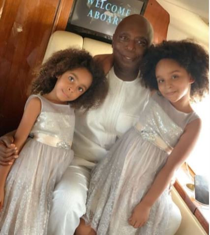 Photos: Billionaire politician, Ned Nwoko and his cute daughters strike a pose in his private jet