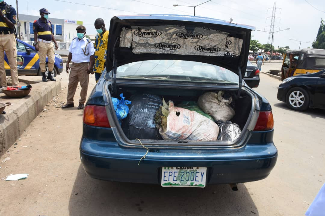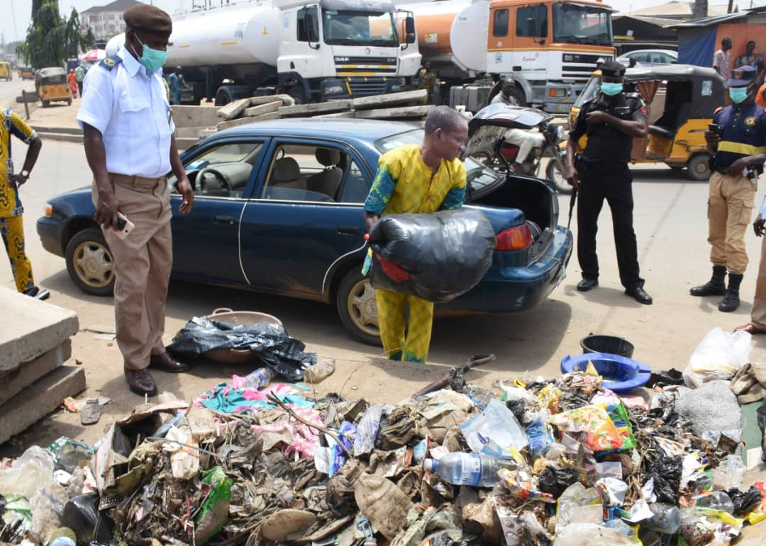 The police and waste managerment agency in Lagos state caught the man pictured above, dumping refuse on the median in Ejigbo LCDA. As punishment for his improper act, he was made to clear all the refuse on that spot with his car and led to his house where he explained his nefarious act to members of his community. He was reportedly made to keep the refuse within his premises for a while, and was later asked to seek the assistance of an assigned waste operator to remove the refuse and register the premises for patronage.See more photos below.