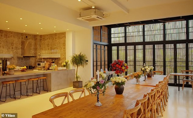 They reportedly spent four million yuan (£462,000) renovating the property, their stunning three-storey mansion is now completed with floor-to-ceiling glass windows, an airy tea pavilion, a massive open kitchen, and a swimming pool.