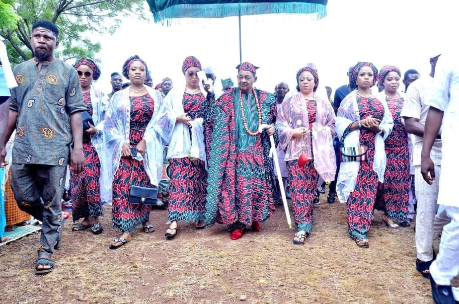 The 80-year-old monarch is pictured above with all his wives as they celebrated Eid-Mubarak in Oyo state yesterday, August 12th.