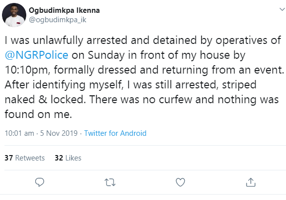 "I was still arrested, striped naked & locked" Man accuses the Nigerian police of unlawful arrest