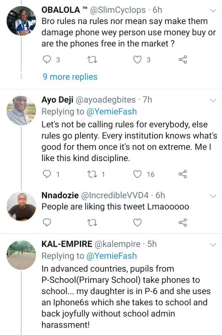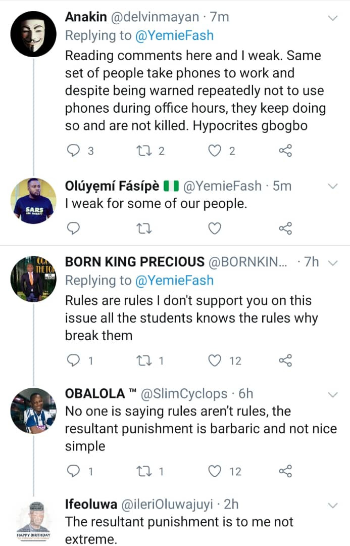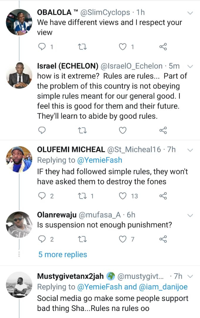 View this post on Instagram Nigerians react after video of a teacher asking a student of the Federal Girls College Akure to destroy her phone and those of her colleagues, goes viral. . . The students violated the rule of the school not to bring their phones to school and as punishment, they were asked to destroy them. . . Some Nigerians argue the punishment is well deserving since the students flouted the rule of the school. Others believe the punishment is extreme. What's your take?A post shared by Lindaikejiblog (@lindaikejiblogofficial) on Mar 2, 2020 at 11:04pm PSTThe post
